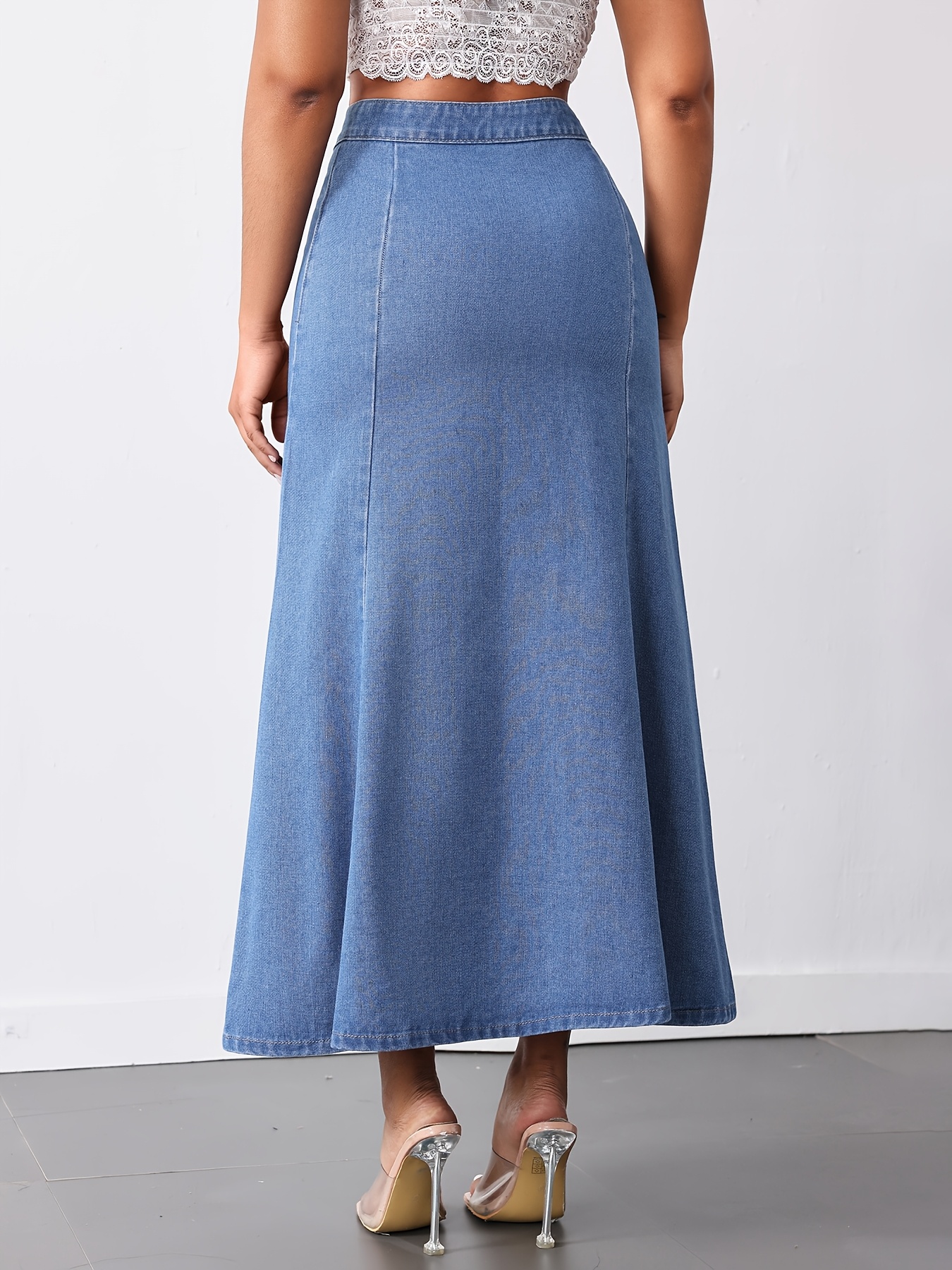 Women'S High-Waist Mermaid Denim Skirt, Casual Style, Non-Stretch Cotton Blend, Solid Color, with Zipper Detail, for Spring/Summer/Fall - Woven Fish Tail Skirt