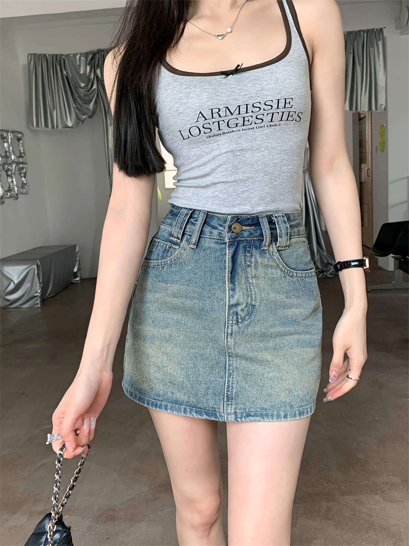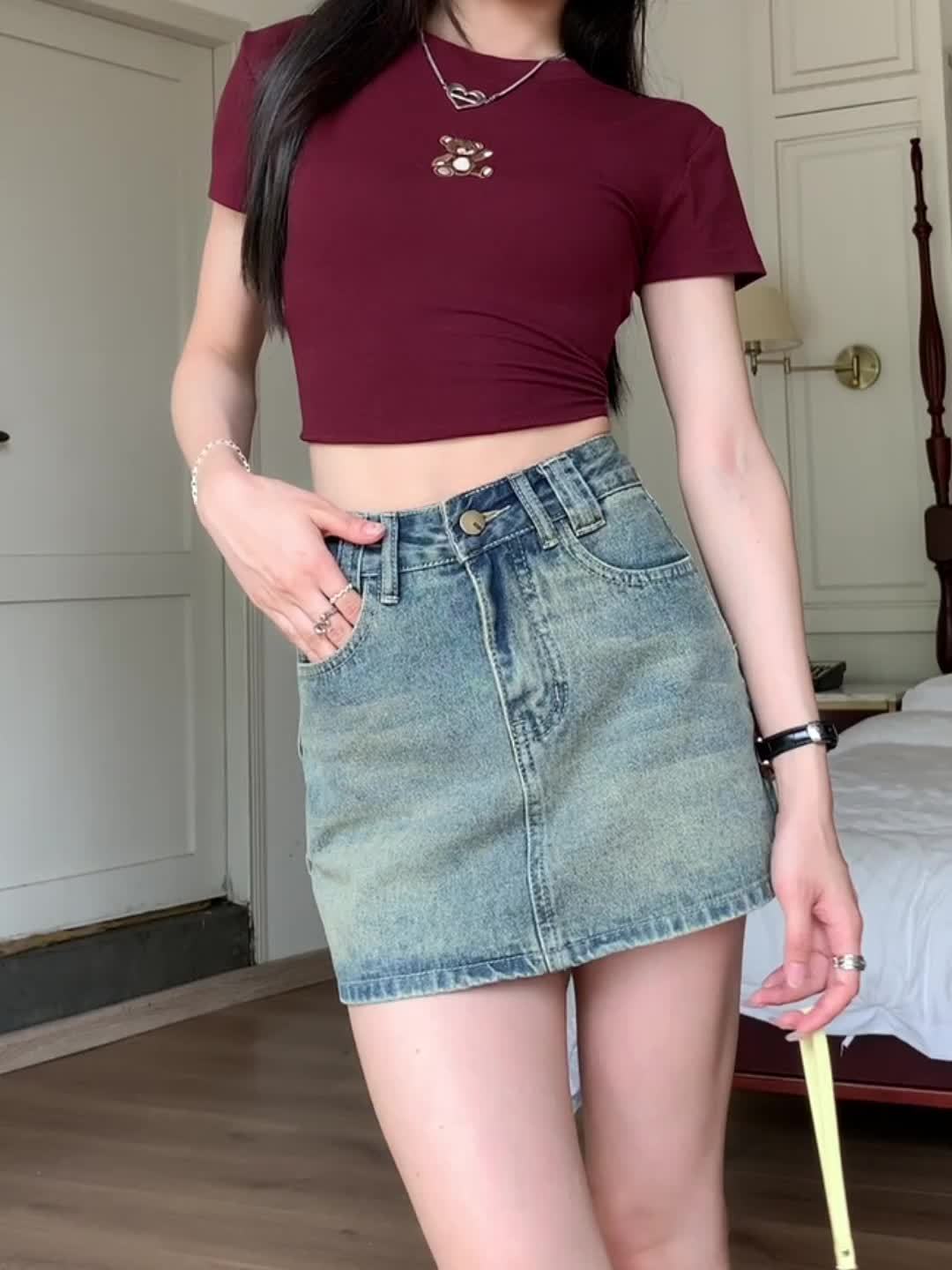 Chic High-Waist A-Line Denim Skirt with Built-In Liner - Casual, Non-Stretch, Machine Washable - Summer Fashion for Women
