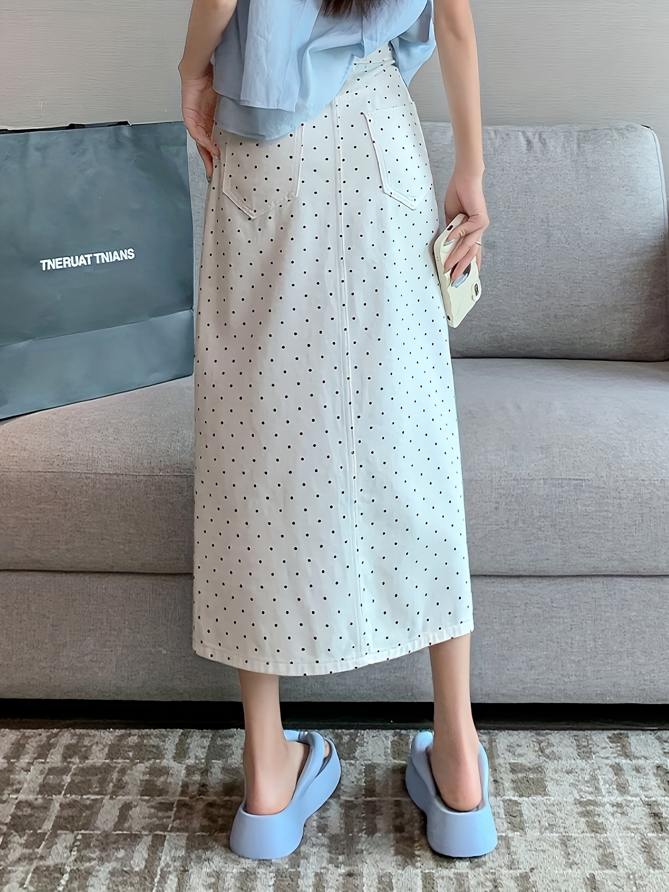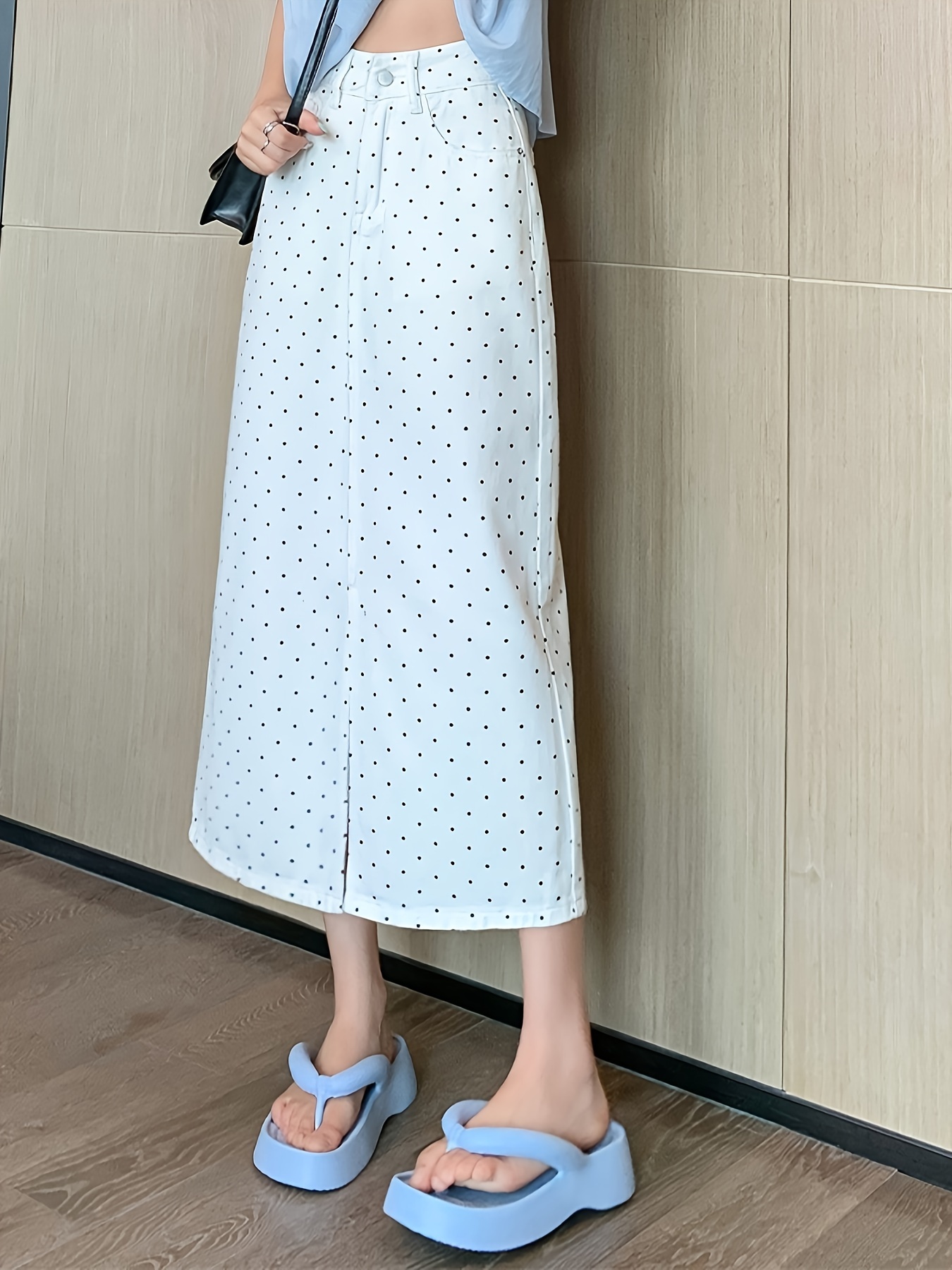Elegant Whisker High Waist Maxi Denim Skirt - Women's Denim Skirts with Polka Dots Print, Stylish and Comfortable Design, Perfect for Casual Daily Wear and Outdoor Activities - Women's Denim Jeans & Clothing