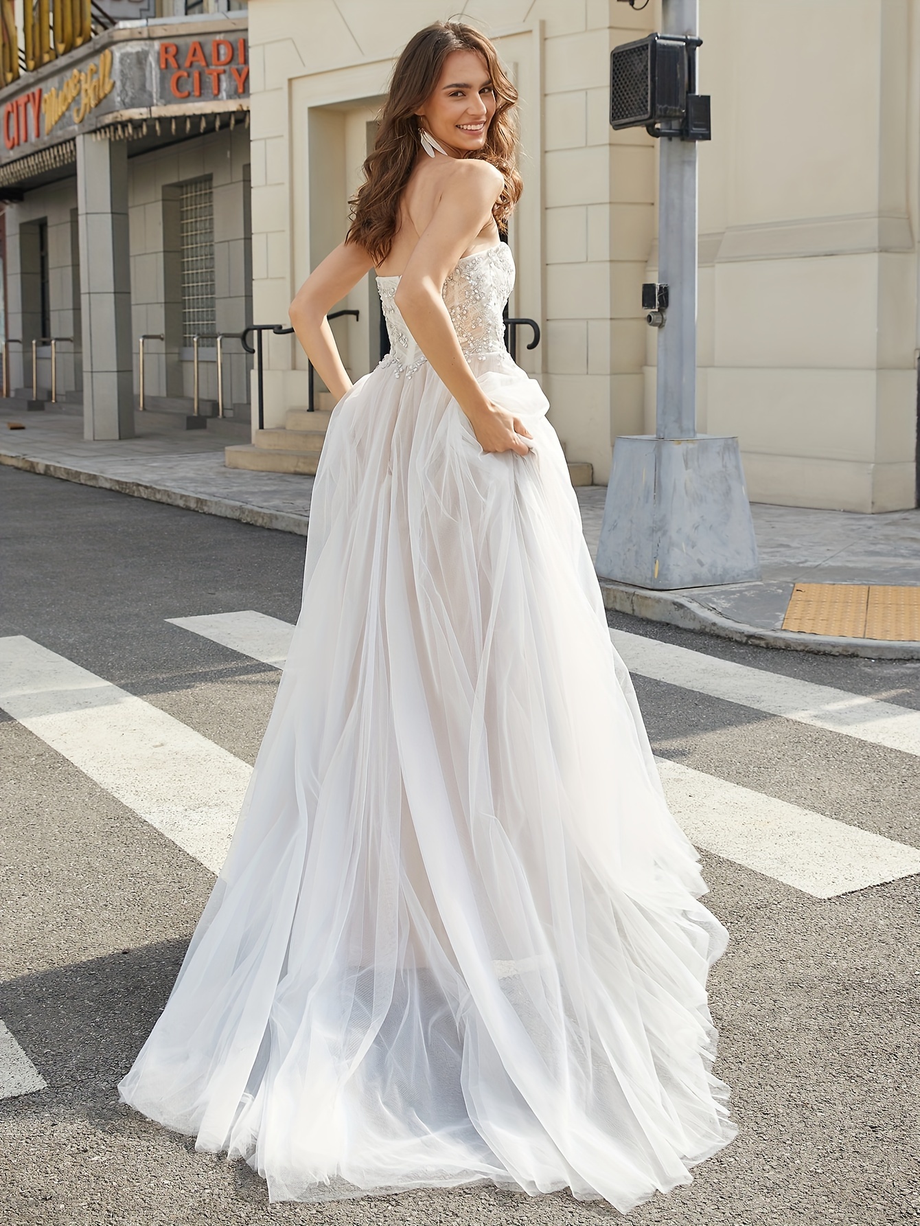 High Slit Luxury Beach Wedding Dresses, Sweetheart Lace Up Back A-Line Tulle Formal Evening Gowns with Hand Beading for Women