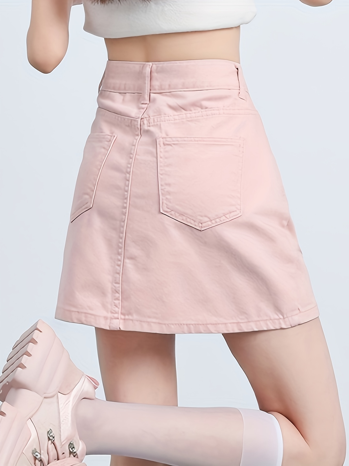 Plain Flap Pocket Cargo Denim Skirt, High Rise Versatile Hot Mini Denim Skirt, Women's Denim Jeans & Clothing