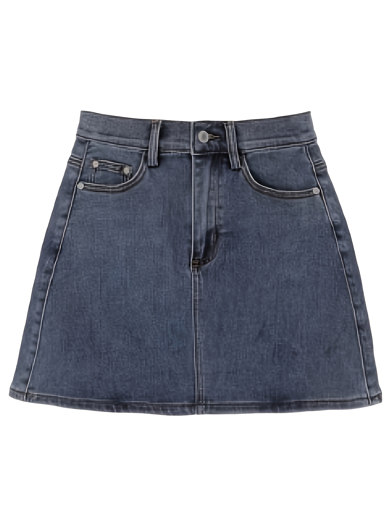 Mini Denim Skirt with Slash Pockets - Women's Denim Skirts for Casual Wear, Versatile, Basic, Washed Blue, Pocket Details, Easy to Style - Perfect for Daily Life, Outdoor Activities, and Travel