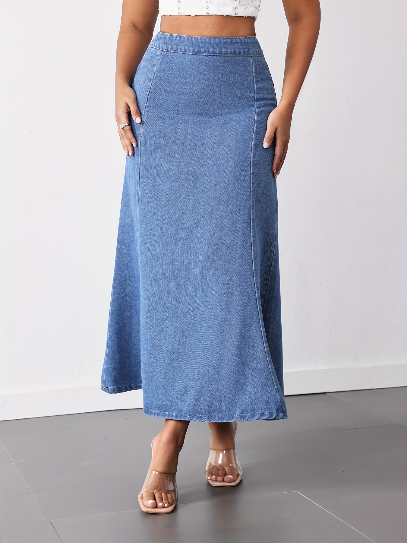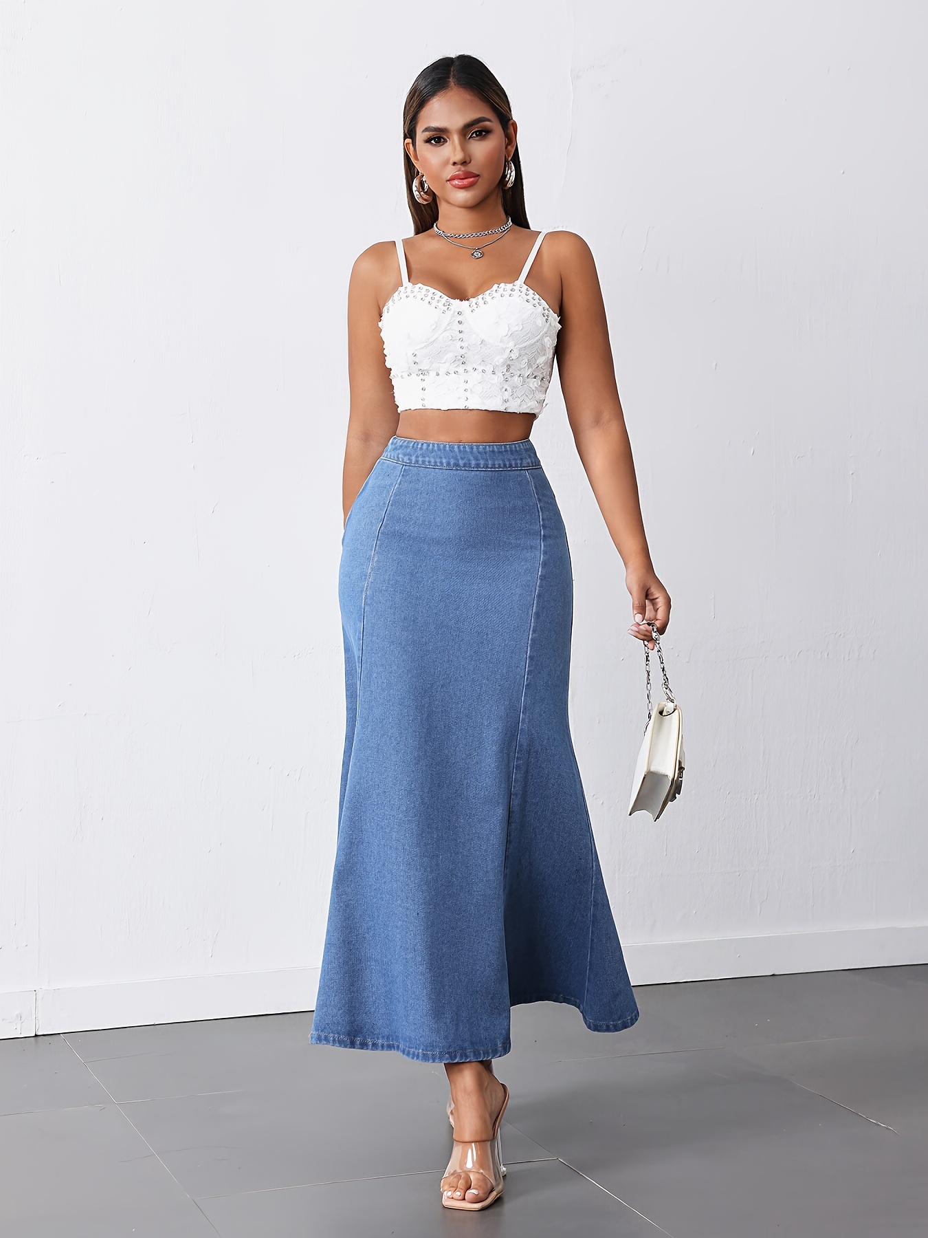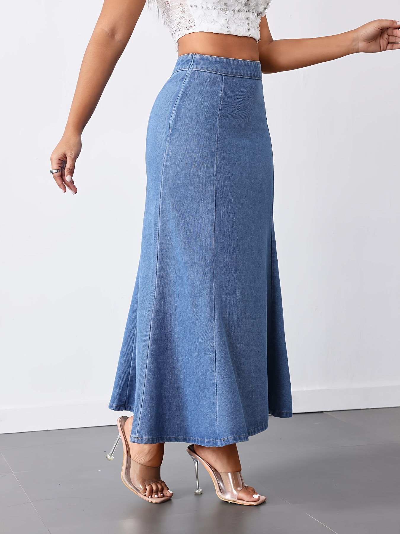 Women'S High-Waist Mermaid Denim Skirt, Casual Style, Non-Stretch Cotton Blend, Solid Color, with Zipper Detail, for Spring/Summer/Fall - Woven Fish Tail Skirt
